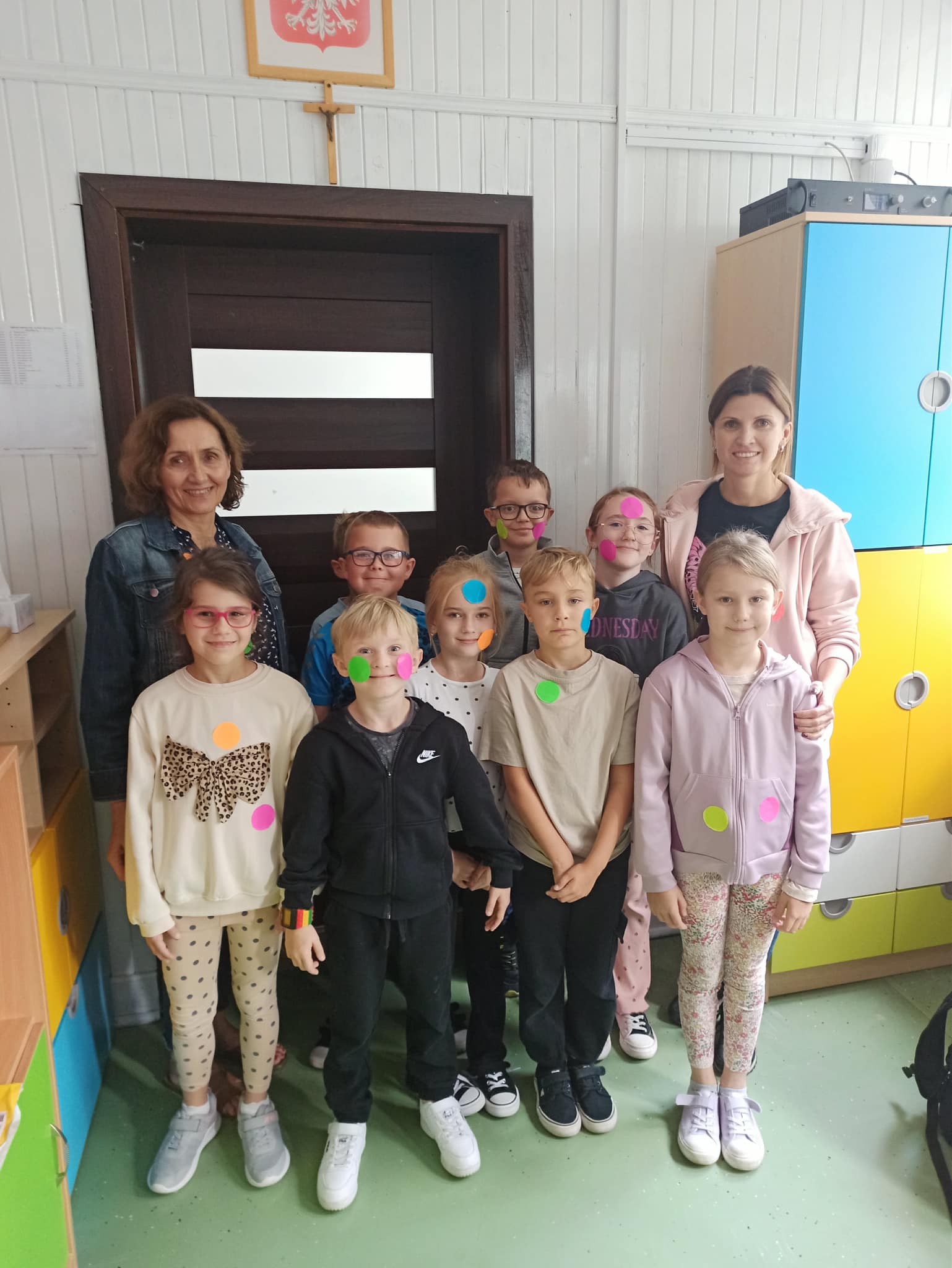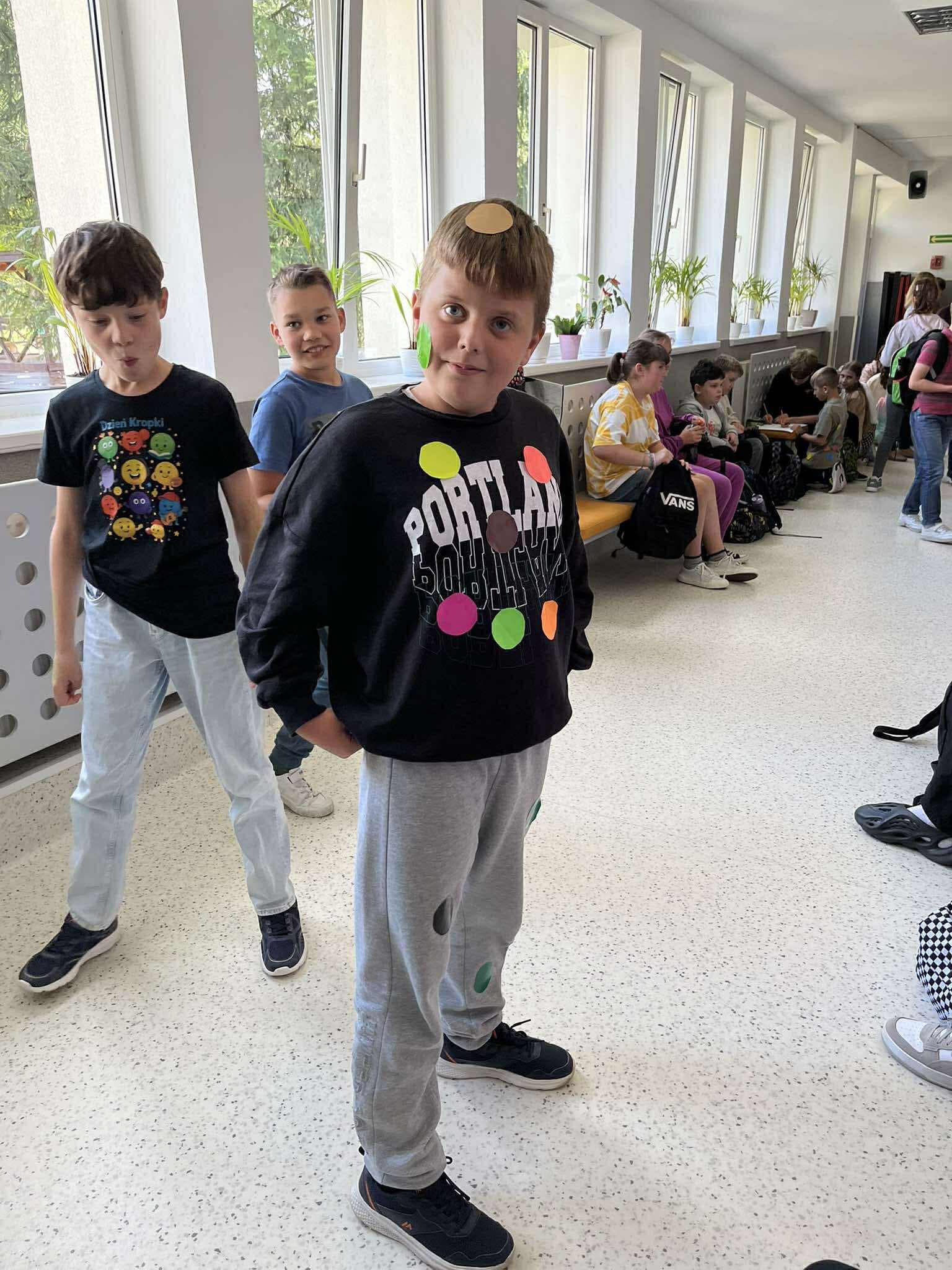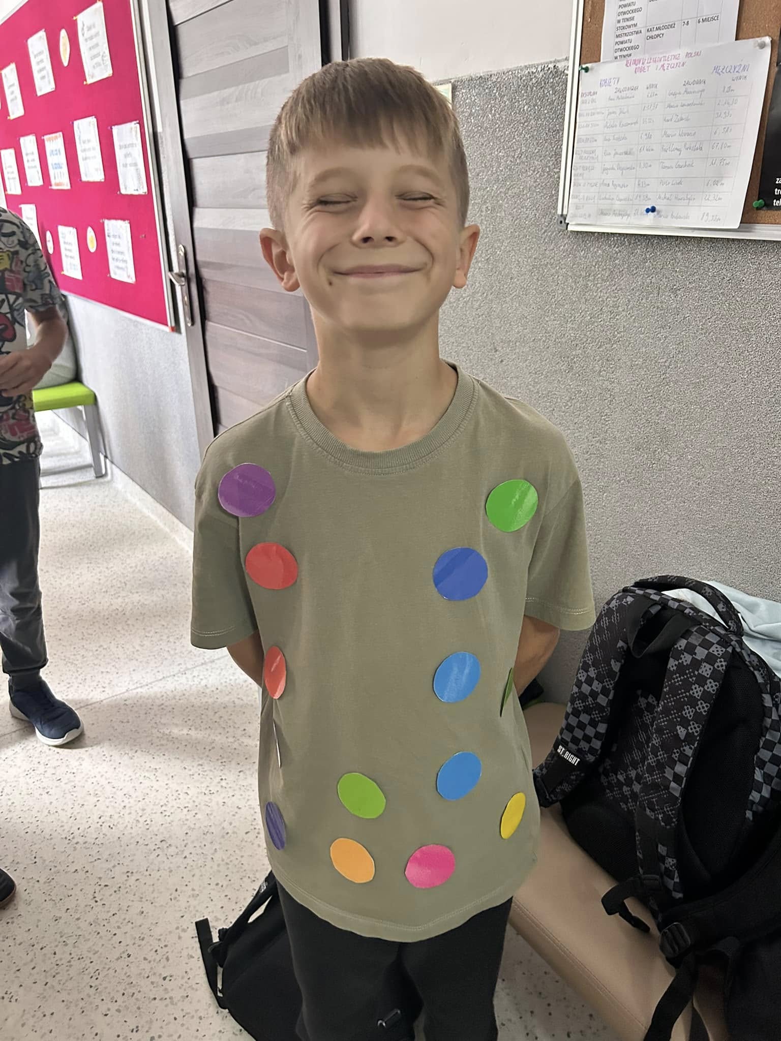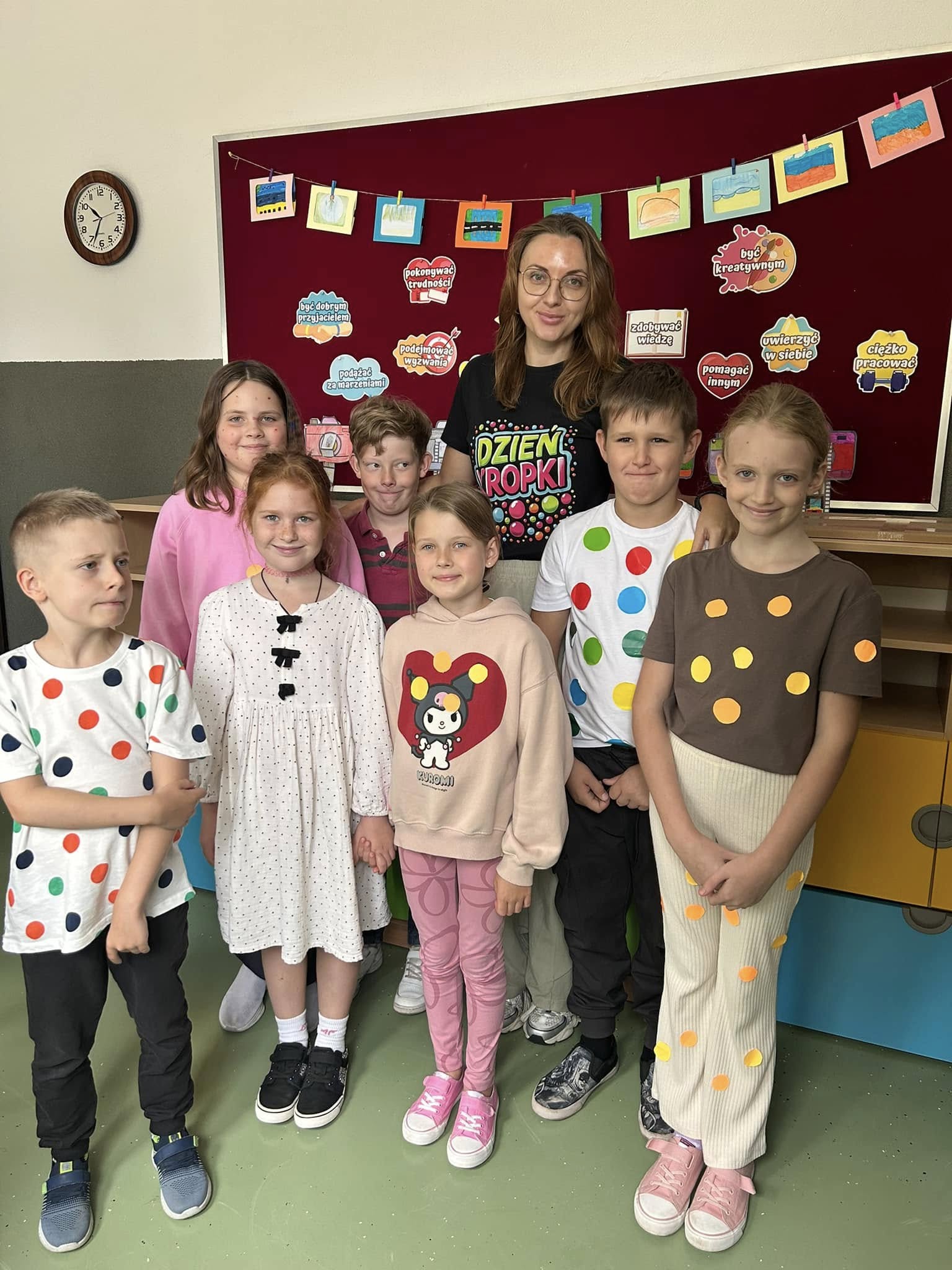 Mnóstwo kolorowych krop, kropek, kropeczek zagościło w szkolnych salach i na korytarzach, ponieważ uczniowie i nauczyciele w tym dniu przyszli ubrani w kropki.