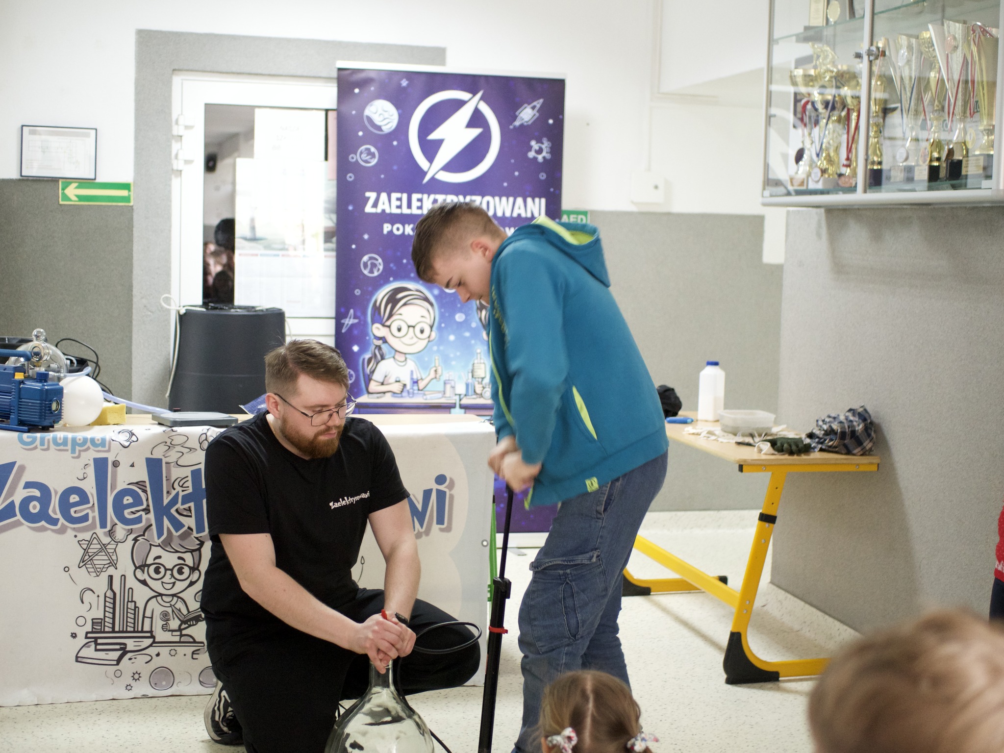 9.04.2026 r. w naszej szkole odbyły się niecodzienne eksperymenty i doświadczenia chemiczno – fizyczne w ramach warsztatów „Zaelektryzowani”.